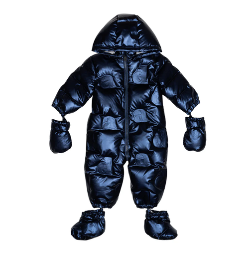 Add Girl's Satin Down Jacket Fur Hood Navy ADFGB030-4000