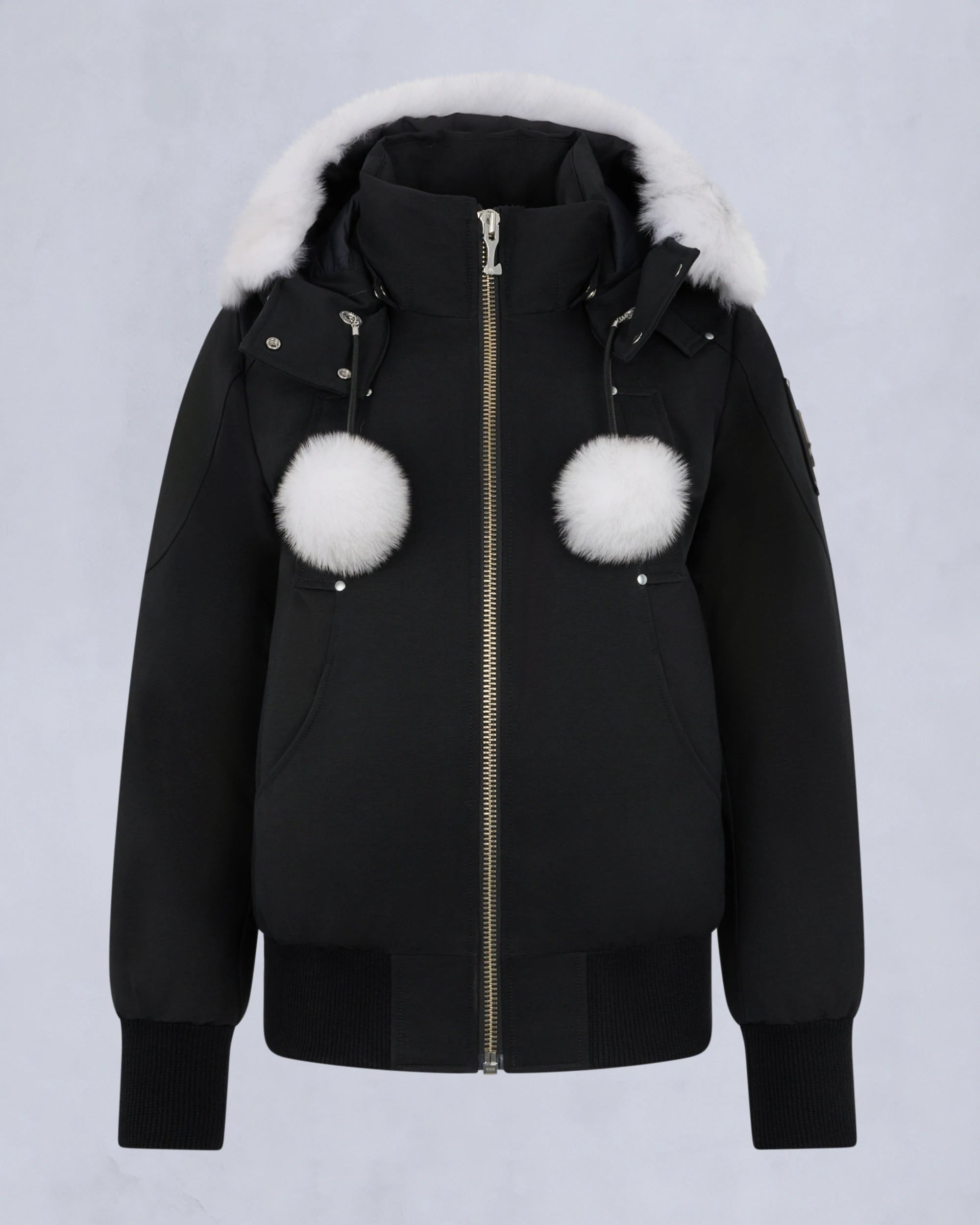 A Moose Knuckles classic, the Debbie Bomber boasts our highest protection rating in a compact, city-driven silhouette. It's engineered with a durable water-repellent shell, powerful 90/10 down, and an adjustable shearling-lined hood. Decorative, cozy pom poms complete the look.