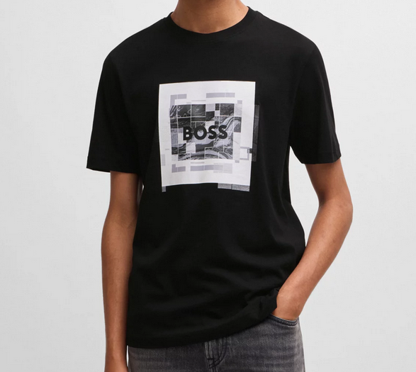 A fresh T-shirt, with collection-themed logo artwork, by BOSS Menswear. Cut to a straight fit, this top is crafted in soft cotton jersey.