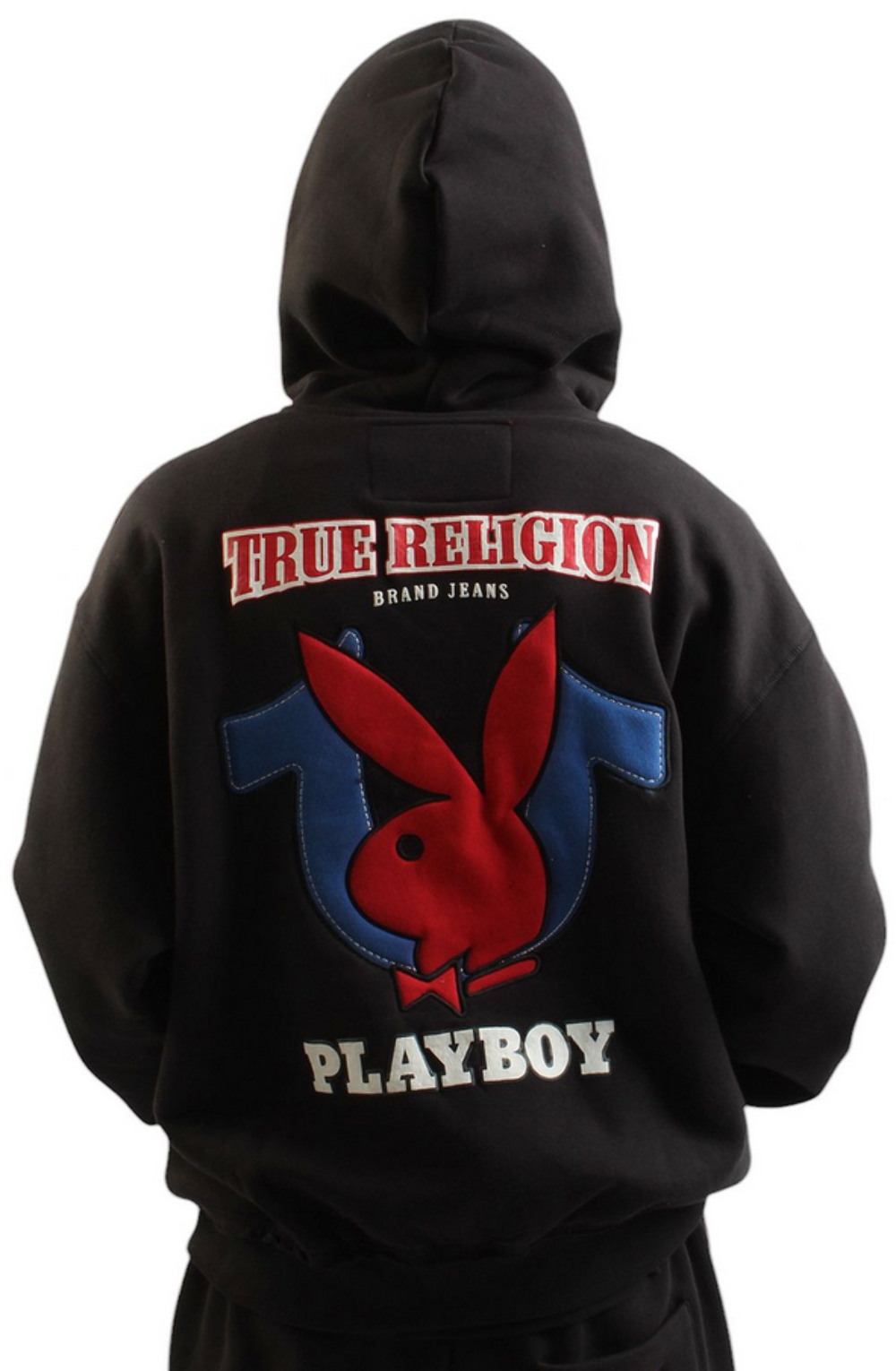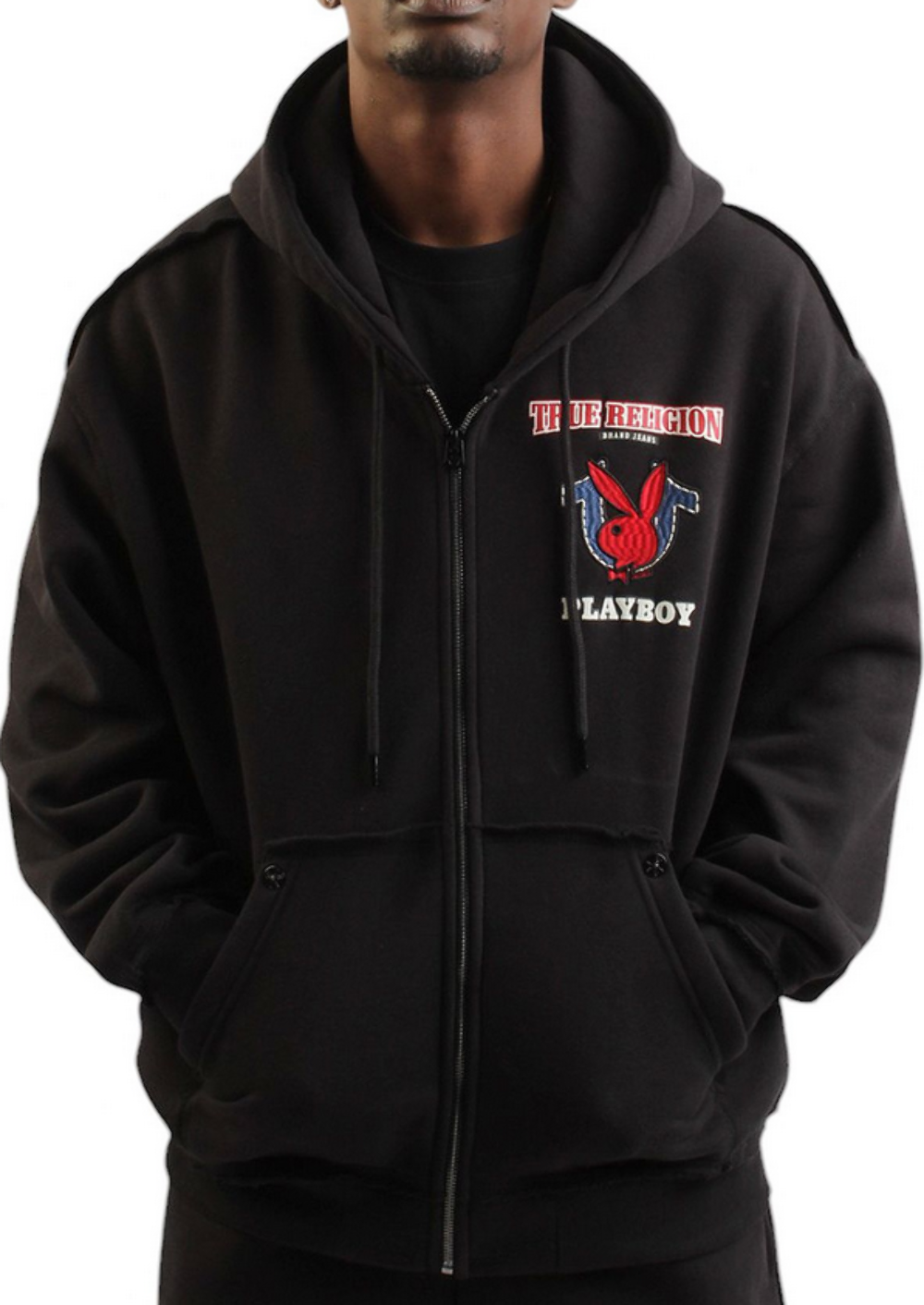 True Religion PB X TR Raw Edge Fleece Zip Up Jet Black 109410C